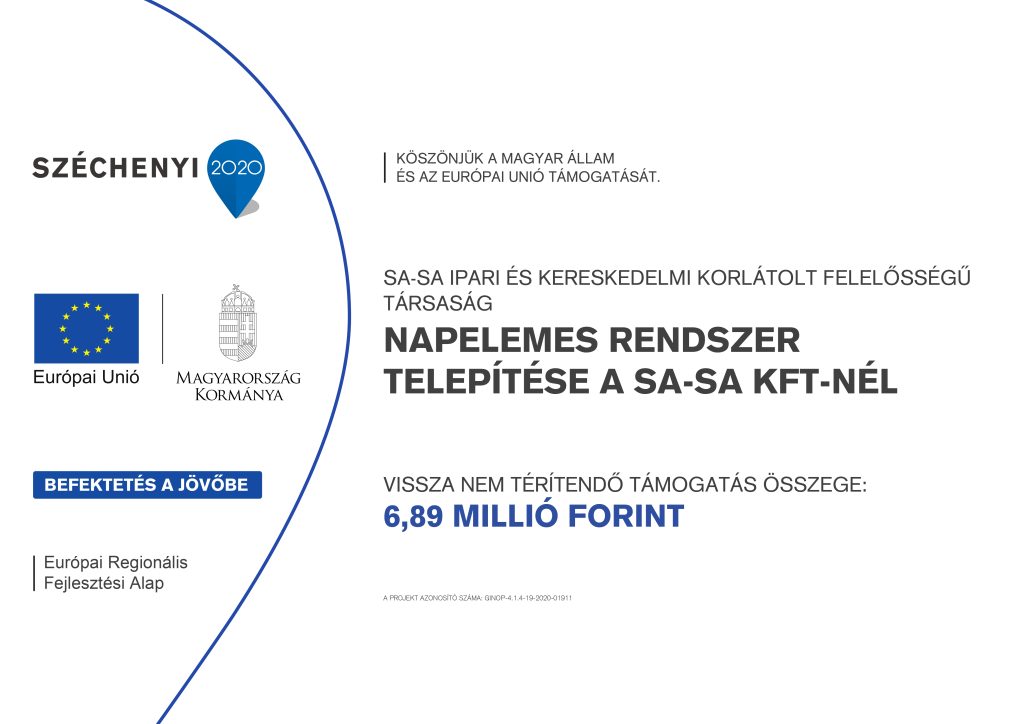 Die Industrie- und Handelsgesellschaft SA-SA GmbH wurde im Jahr 1995 gegründet. Von Anfang an hat sich die Firma auf die Herstellung von Bauteilen für die Gabelstapler-Industrie spezialisiert. Im Sept 2002 verlagerte die Firma ihren Standort auf Bocfölde, 7 km von Zalaegerszeg entfernt. Seit der Gründung wurde die Produktivität des Betriebs und des Maschinenparkes – neue Schweißgeräte, Bohrmaschinen, Biegemaschinen und Bandsägemaschinen – ständig ausgebaut. Es werden auch Stahlbauten; Tore, Türen und Geländer auf Einzelbestellung produziert. Im Sept 2004 hat das Unternehmen das Qualitätszertifikat ISO 9001:2000 erlangt und im Febr 2007 die Anforderungen der DIN 18800-7 Schweiss-Qualifizierung erfüllt. Wir haben im Jahr 2007 weiter expandiert, unsere Produktionsfläche erweitert, neue Metallreinigungssystem in Betrieb genommen und neue Lackiertechnik (mit lösemittelhaltigen Lacken) eingeführt. Durch die kontinuierlichen Entwicklungen konnten wir die Produktivität – den Kundenwünschen entsprechend – erhöhen und erweitern, bei gleichzeitiger Sicherstellung der geforderten Qualität.